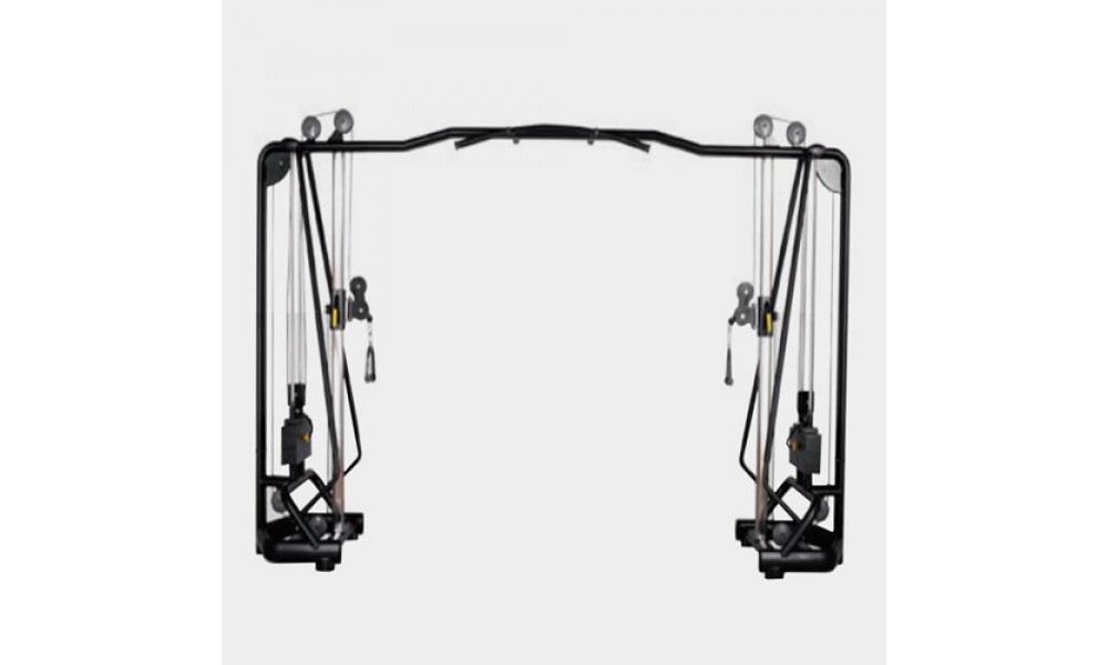 Профессиональный кроссовер с усиленной станиной 60*120 мм. и толщиной профиля 2.5 мм. Нагружается весовыми плитами, по 80 кг. на каждую из двух сторон. Турник прилагается. Защита стека отсутствует.